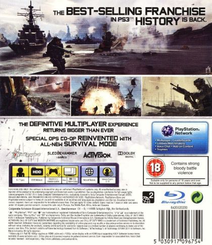 Call of Duty: Modern Warfare 3 - Co-developed by Infinity Ward and Sledgehammer Games, Modern Warfare 3 is set in a world on the edge of annihilation as Makarov and his terrorist organization unleash destruction and chaos across the globe. Playing as a member of several special-forces units and armed with the most advanced weaponry, players work with Delta operators and reunite with familiar characters to enter a dangerous game of cat-and-mouse as they race across the globe to stop a mad man before it's too late. Modern Warfare 3 advances the 60 fps Modern Warfare tech to deliver exhilarating, action-packed experiences across Single Player, Special Ops and Online Multiplayer modes.