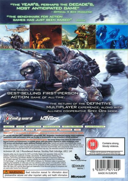 The call of duty needs answering once again, as the blockbusting first person shooter series returns to the modern day. A direct sequel to Call of Duty 4: Modern Warfare, you now play new character Sgt Gary "Roach" Sanderson. Your commander is "Soap" from the first game as you join a multinational anti-terrorist squad out to stop Russian ultra nationalists.
