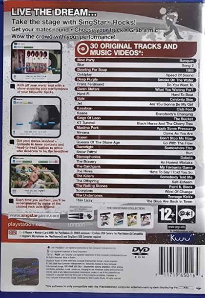 Featuring 30 fully licensed tracks from global rock sensation The Killers to the heartbreak rock of Snow Patrol, and from one of London's hottest Indie phenomena - Bloc Party to the Courtney Love inspired genius of Hole, SingStar Rocks! delivers a special "access all areas" pass to the finest in live music.