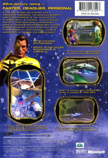 Quantum Redshift puts gamers in command of the most extreme, hyperspeed racing machines that travel in excess of 650 mph and are able to interact with the terrain. As players progress, they unlock not only new characters but also new speeds (five in all), providing a racing experience like no other. In addition, the vehicles are equipped with highly advanced offensive and defensive weapons systems, allowing characters to attack each other with everything from plasma bolts to tidal waves. Players will have the opportunity to race on a total of 16 detail-laden tracks and compete in up to four-player split-screen against their friends.