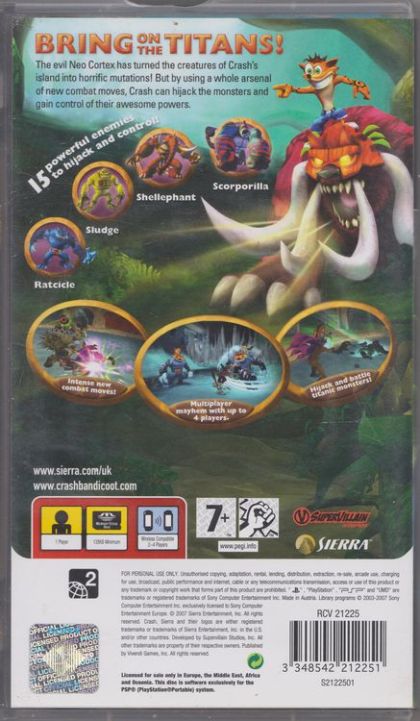 In a nefarious plot to unleash destruction, Crash's arch-nemeses, Neo and Nina Cortex, have mutated the creatures of Crash's island into monstrous abominations! Never one to shirk from danger, our orange furry friend finds that with his potent mix of wacky bravado and daredevil action he is able to hijack the titanic monsters and wield their immense powers against each other! Bring on the titans, because with Crash in charge, the bigger the baddie, the better!