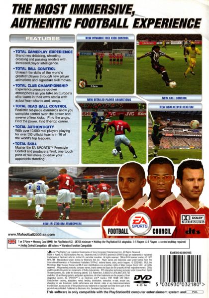 The world's most successful football franchise returns to classic form by focusing on the fundamentals of football. FIFA Football 2003 provides an immersive, authentic experience driven by an ALL NEW game engine. This is football gaming that lives by the rules of the real sport and absorbs the users in a world of detail and culture.
