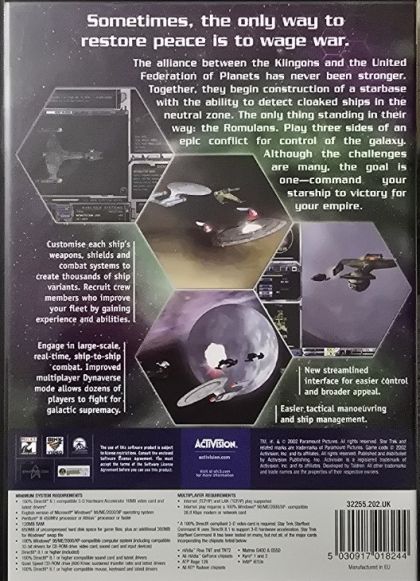 Star Trek Starfleet Command III will also feature a multiplayer "skirmish mode" where players can engage in combat as any of the three playable races from the campaign or as the Borg. Skirmish mode offers instant action-style free-for-all and team-based multiplayer games. Star Trek Starfleet Command III also includes an enhanced version of the Dynaverse 3 multiplayer environment. This persistent online component will feature improved AI and a new system that allows players to join the same fleet, travel together across the map and battle alongside one another for galactic dominance.