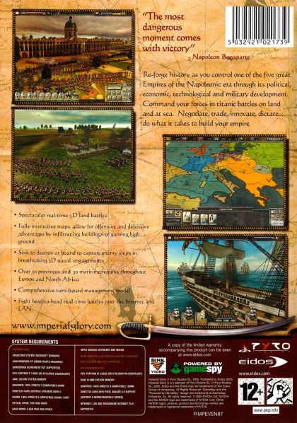 Forge the destiny of the world amid the turbulent times of the early 19th century. Lead one of the Great Empires in titanic conflicts, or achieve economic dominance backed by shrewd diplomats and resolute military. Choose to rule as absolute despot or constitutional monarch. Unleash Hussars, Lancers, Dragoons and Imperial Guards across more than 50 battle maps - from the green fields of England, to the icy wastes of Russia and sweeping deserts of Morocco - all in stunning, full 3D. Fight for naval dominance in breathtaking, real-time sea battles. This is an age of change - be at the leading edge of modernity or your civilization will fall by the wayside.