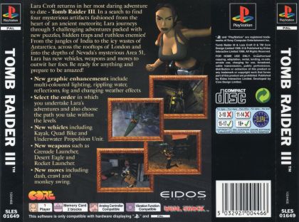 Join Lara in her biggest adventure to date in the phenomenal Tomb Raider series. Play through five huge worlds, in any order, on the quest for an ancient meteor rumored to have life-giving powers. New puzzles, environments, and even a few old enemies, like the infamous T-Rex await you. From the jungles of India to the icy wastes of Antarctica, across the rooftops of London and into the depths of Nevada's mysterious Area 51, Lara is ready for anything. Prepare to be amazed!