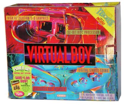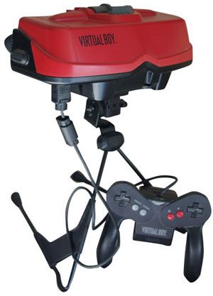 The Virtual Boy[a] was a 32-bit table-top video game console developed and manufactured by Nintendo. Released in 1995, it was marketed as the first console capable of displaying stereoscopic 3D graphics. The player uses the console in a manner similar to a head-mounted display, placing their head against the eyepiece to see a red monochrome display. The games use a parallax effect to create the illusion of depth. Sales failed to meet targets, and by early 1996, Nintendo ceased distribution and game development, only ever releasing 22 games for the system.