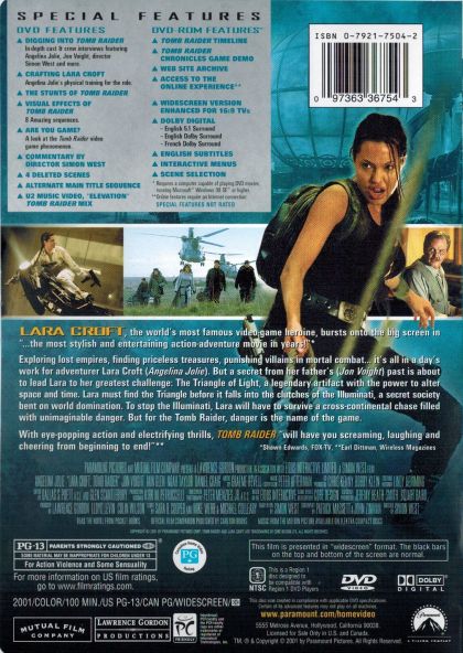 | Extras | Digging into Tomb Raider - In-depth Cast & Crew Interviews, Featuring Angelina Jolie, Jon Voight, Di |