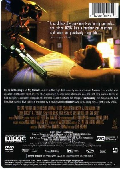 After a lightning bolt zaps a robot named Number 5, the lovable machine starts to think he's human and escapes the lab. Hot on his trail is his designer, Newton, who hopes to get to Number 5 before the military does. In the meantime, a spunky animal lover mistakes the robot for an alien and takes him in, teaching her new guest about life on Earth.
