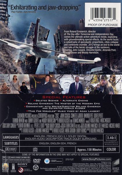 | Producer | Aaron Boyd, Roland Emmerich, Ute Emmerich, Volker Engel, Larry Franco, Mark Gordon, Harald Kloser, Marc Weigert, Michael Wimer, Kirstin Winkler | |