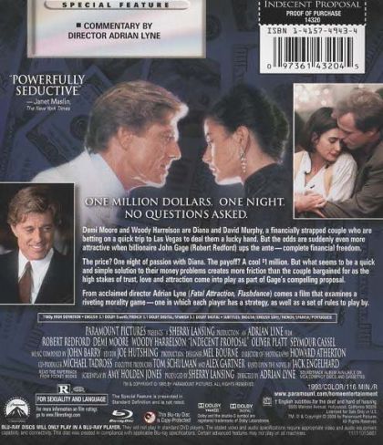 John Gage offers a down-on-his-luck yuppie husband $1 million for the opportunity to spend the night with the man's wife.