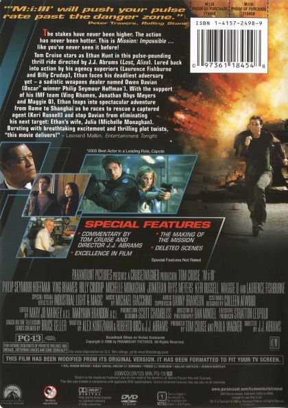 Retired from active duty, and training recruits for the Impossible Mission Force, agent Ethan Hunt faces the toughest foe of his career: Owen Davian, an international broker of arms and information, who's as cunning as he is ruthless. Davian emerges to threaten Hunt and all that he holds dear – including the woman Hunt loves.