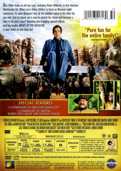 Chaos reigns at the natural history museum when night watchman Larry Daley accidentally stirs up an ancient curse, awakening Attila the Hun, an army of gladiators, a Tyrannosaurus rex and other exhibits.