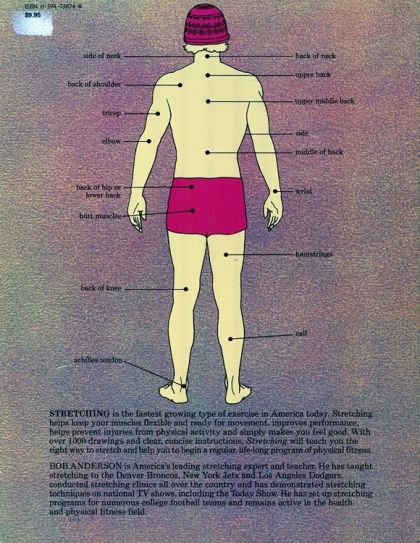 The book Stretching was first published in 1975 when fitness awareness was in its infancy. Stretching has since sold over two million copies in the USA and has been published in 24 foreign editions worldwide. Now after twenty-one years and with many other books on the market, it has become the most widely-used and recommended book on stretching and its popularity continues to grow each year. The reasons for this may be the book's simple, user-friendly organization, the easy to follow individual stretches and principles, the ample line drawings by Jean Anderson, and the need for every body to stretch.