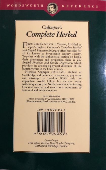 From Amara Dulcis to Yarrow, All-Heal to Viper's Bugloss, Culpeper's Complete Herbal and English Physician Enlarged offers remedies for all ills known to Seventeenth century society. Together with the alphabetical section on herbs, their provenance and properties, there is The English Physician and Family Dispensary, which provides an astrologo-physical discourse of the human virtues in the body of man. Nicholas Culpeper (1616-1654) studied at Cambridge and became an apothecary, physician and astrologer in London. Whilst only the imprudent would follow his dictates today without question, the Herbal remains a fascinating historical treatise, and stands as a monument to botanical and medical science.