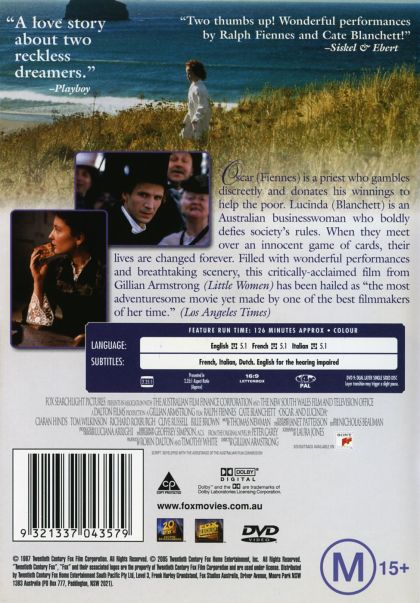 After a childhood of abuse by his evangelistic father, misfit Oscar Hopkins becomes an Anglican minister and develops a divine obsession with gambling. Lucinda Leplastrier is a rich Australian heiress shopping in London for materials for her newly acquired glass factory back home. Deciding to travel to Australia as a missionary, Oscar meets Lucinda aboard ship, and a mutual obsession blossoms. They make a wager that will alter each of their destinies.
