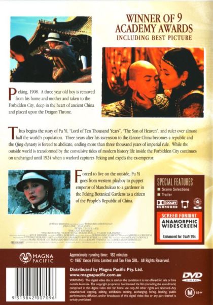 A dramatic history of Pu Yi, the last of the Emperors of China, from his lofty birth and brief reign in the Forbidden City, the object of worship by half a billion people; through his abdication, his decline and dissolute lifestyle; his exploitation by the invading Japanese, and finally to his obscure existence as just another peasant worker in the People's Republic.
