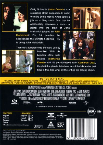 One day at work, unsuccessful puppeteer Craig finds a portal into the head of actor John Malkovich. The portal soon becomes a passion for anybody who enters its mad and controlling world of overtaking another human body.