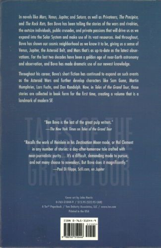 New tales of humanity's near-future exploration of the Solar System, from a science fiction master and award-winning author Ben Bova In novels like Mars, and Moonbase, and Venus, Jupiter, and Saturn, as well as Privateers, The Precipice, and The Rock Rats, Ben Bova has been telling the stories of the wars and rivalries, the outsize individuals, public crusades, and private passions that will drive us as we expand into the Solar System and make use of its vast resources. And throughout, Bova has shown our cosmic neighborhood as we know it to be, giving us a sense of Venus and Jupiter and the Asteroid Belt and Mars that's as up-to-date as the latest observations. For the last two decades have been a golden age of near-Earth astronomy and observation, and Bova has made dramatic use of our newest knowledge.Bova has written short fiction about some of the same characters and events--Sam Gunn, Martin Humphries, Klaus Fuchs, Dan Randolph, the Asteroid Wars. Now, in Tales of the Grand Tour, those stories are collected in book form for the first time, creating a volume that is a landmark of modern SF.