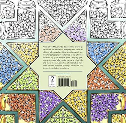 In this newest coloring book by the author of the internationally bestselling Fantastic Cities (more than 400,000 copies in print), artist Steve McDonald uses his unique photo-based approach to create beautiful and intimately detailed line drawings of amazing collections of objects. Finding inspiration in the unusual (museum collections, antiques, and quirky toys) and the everyday (leaves, butterflies, vintage cameras, store product displays), McDonald creates playful and immersive illustrations that are as lovely as they are fun to color. The quality of the large, crisp white pages are conducive to a range of applications, while a middle margin keeps all the artwork fully colorable. A dozen meditative mandalas created from the drawings round out this gorgeous adult coloring book.