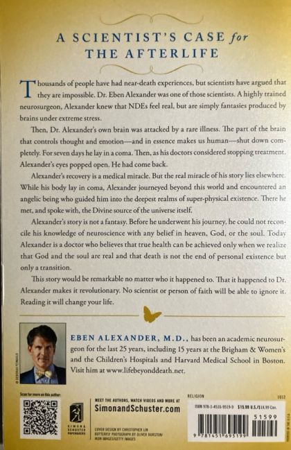 The #1 New York Times bestselling account of a neurosurgeon's own near-death experience—for readers of 7 Lessons from Heaven. Thousands of people have had near-death experiences, but scientists have argued that they are impossible. Dr. Eben Alexander was one of those scientists. A highly trained neurosurgeon, Alexander knew that NDEs feel real, but are simply fantasies produced by brains under extreme stress.Then, Dr. Alexander’s own brain was attacked by a rare illness. The part of the brain that controls thought and emotion—and in essence makes us human—shut down completely. For seven days he lay in a coma. Then, as his doctors considered stopping treatment, Alexander’s eyes popped open. He had come back. Alexander’s recovery is a medical miracle. But the real miracle of his story lies elsewhere. While his body lay in coma, Alexander journeyed beyond this world and encountered an angelic being who guided him into the deepest realms of super-physical existence. There he met, and spoke with, the Divine source of the universe itself. Alexander’s story is not a fantasy. Before he underwent his journey, he could not reconcile his knowledge of neuroscience with any belief in heaven, God, or the soul. Today Alexander is a doctor who believes that true health can be achieved only when we realize that God and the soul are real and that death is not the end of personal existence but only a transition. This story would be remarkable no matter who it happened to. That it happened to Dr. Alexander makes it revolutionary. No scientist or person of faith will be able to ignore it. Reading it will change your life.
