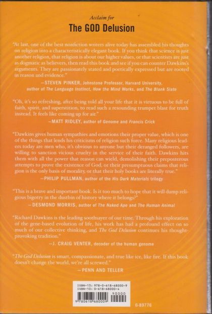 A preeminent scientist--and the world's most prominent atheist--asserts the irrationality of belief in God and the grievous harm religion has inflicted on society, from the Crusades to 9/11. With rigor and wit, Dawkins examines God in all his forms, from the sex-obsessed tyrant of the Old Testament to the more benign (but still illogical) Celestial Watchmaker favored by some Enlightenment thinkers. He eviscerates the major arguments for religion and demonstrates the supreme improbability of a supreme being. He shows how religion fuels war, foments bigotry, and abuses children, buttressing his points with historical and contemporary evidence. The God Delusion makes a compelling case that belief in God is not just wrong but potentially deadly. It also offers exhilarating insight into the advantages of atheism to the individual and society, not the least of which is a clearer, truer appreciation of the universe's wonders than any faith could ever muster.