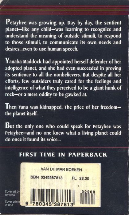 Petaybee was growing up. Day by day, the sentient planet - like any child - was learning to recognize and understand the meaning of outside stimuli, to respond to those stimuli, to communicate its own needs and desires ... even to use human speech. But few outsiders truly cared for the feelings and intelligence of what they perceived to be a giant hunk of rock - or a mere oddity to be gawked at. Some came to worship the newly awakened soul. Some came by invitation, but without comprehension, to harvest the almost magically curative native plants. Big game hunters came chasing rumors of fantastical creatures that simply gave themselves up for the killing. And tourists came in droves, many of them searching for long-lost relatives among those whom Intergal had relocated to Petaybee during its colonization phase. The Petaybeans had their hands full trying to protect their beloved planet from the sudden influx of visitors. Then some of Petaybee's staunchest champions - Yanaba Maddock, Marmion de Revers Algemeine, Bunny Rourke, and Diego Metaxos - were kidnapped. The perpetrators wanted Petaybee for its incredible mineral wealth. Their other attempts at plundering the planet had all failed, and now they were determined to force the Petaybeans to make a trade: the planet for the people. They simply didn't understand that such a bargain was impossible. For the only one who could speak for Petaybee was Petaybee itself and no one knew what a living planet could do once it found its voice...