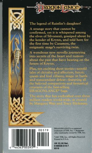 The legend of Raistlin's daughter!A strange story that cannot be confirmed, yet it is whispered among the elves of Silvanesti, gossiped about by the kender of Krynn, and told here for the first time by Caramon, the enigmatic mage's surviving twin.A wondrous new novella journeying into secrets of the heart and rumors about the past that have bearing on the future of Krynn.Plus ten exciting short stories -- untold tales of chivalry and affection, heroic quests and foul villainy, magic in battle and transcendent defeat -- featuring all the beloved companions and fantastical creatures of the best-selling Dragonlance Saga.The story that has entrhalled over three million readers worldwide, as created by Margaret Weis and Tracy Hickman.