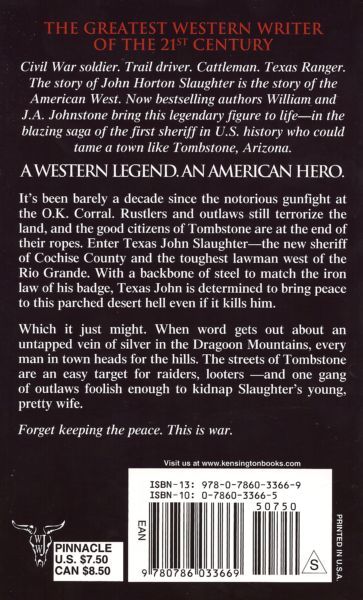 Its been barely a decade since the notorious gunfight at the O.K. Corral. Rustlers and outlaws still terrorize the land, and the good citizens of Tombstone are at the end of their ropes. Enter Texas John Slaughterthe new sheriff of Cochise County and the toughest lawman west of the Rio Grande. With a backbone of steel to match the iron law of his badge, Texas John is determined to bring peace to this parched desert hell even if it kills him. Which it just might. When word gets out about an untapped vein of silver in the Dragoon Mountains, every man in town heads for the hills. The streets of Tombstone are an easy target for raiders, lootersand one gang of outlaws foolish enough to kidnap Slaughters young, pretty wife.