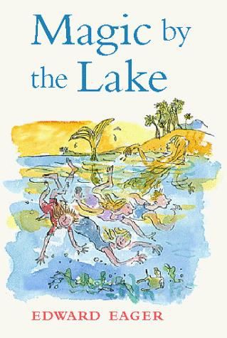 The further adventures of Martha, Jane, Mark, and Katharine, from Half-Magic. Their summer vacation is enlivened by an entire magic lake, channeled through a talking, and somewhat grumpy, box turtle. They are stranded on a desert island, visit Ali-Baba's cave, and end up rescued-- by some children the reader sees in the next book. Half Magic and Magic by the Lake are set in the 1920s, much earlier than the other Tales. They draw on Eager's own childhood in that period, including vacations at Hamilton Lake in northern Indiana (the setting for Magic by the Lake).--Wikipedia (accessed 12 August 2024).