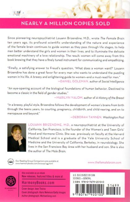 Since Dr. Brizendine wrote The Female Brain ten years ago, the response has been overwhelming. This New York Times bestseller has been translated into more than thirty languages, has sold nearly a million copies between editions, and has most recently inspired a romantic comedy starring Whitney Cummings and Sofia Vergara. And its profound scientific understanding of the nature and experience of the female brain continues to guide women as they pass through life stages, to help men better understand the girls and women in their lives, and to illuminate the delicate emotional machinery of a love relationship.Why are women more verbal than men? Why do women remember details of fights that men can’t remember at all? Why do women tend to form deeper bonds with their female friends than men do with their male counterparts? These and other questions have stumped both sexes throughout the ages. Now, pioneering neuropsychiatrist Louann Brizendine, M.D., brings together the latest findings to show how the unique structure of the female brain determines how women think, what they value, how they communicate, and who they love. While doing research as a medical student at Yale and then as a resident and faculty member at Harvard, Louann Brizendine discovered that almost all of the clinical data in existence on neurology, psychology, and neurobiology focused exclusively on males. In response to the overwhelming need for information on the female mind, Brizendine established the first clinic in the country to study and treat women’s brain function. In The Female Brain, Dr. Brizendine distills all her findings and the latest information from the scientific community in a highly accessible book that educates women about their unique brain/body/behavior. The result: women will come away from this book knowing that they have a lean, mean, communicating machine. Men will develop a serious case of brain envy.