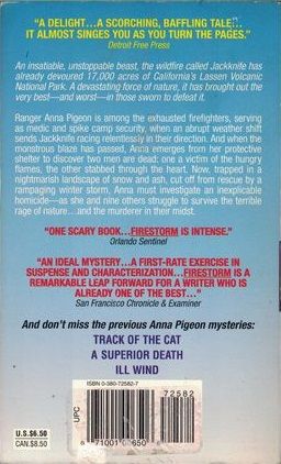 "An insatiable, unstoppable beast, the wildfire called Jackknife has already devoured 17,000 acres of California's Lassen Volcanic National Park. A devastating force of nature, it has brought out the very best -- and worst -- in those sworn to defeat it." Ranger Anna Pigeon is among the exhausted firefighters, serving as medic and spike camp security, when an abrupt weather shift sends Jackknife racing relentlessly in their direction. And when the monstrous blaze has passed, Anna emerges from her protective shelter to discover two men are dead: one a victim of the hungry flames, the other stabbed through the heart. Now, trapped in a nightmarish landscape of snow and ash, cut off from rescue by a rampaging winter storm, Anna must investigate an inexplicable homicide -- as she and nine others struggle to survive the terrible rage if nature. . . and the murderer in their midst.