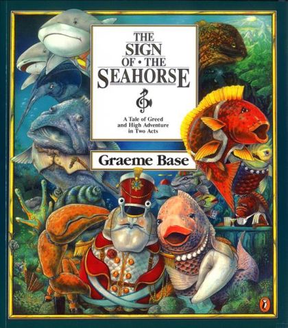 In which the villainous Gropmund Grouper devises a dastardly scheme to rob the innocent folk of Reeftown of their homes and money, but is foiled by the efforts of the intrepid Pearl Trout, her fiery brother, Finneus, and brave Corporal Bert of the Soldiercrab Army.Graeme Base, who created Abrams' best-selling Animalia and The Eleventh Hour, now offers The Sign of the Seahorse, a sweeping drama of intrigue and excitement set in the beautiful but fragile underwater world of a coral reef.Beginning at the famous Seahorse Cafe, social hub of the Old Reef, The Sign of the Seahorse takes us on a great journey. We travel from the doomed coral gardens of Reeftown to a sunken wreck and an underwater junkyard, across the barren expanse of the Withered Plain, and into the vast, uncharted chasms of the Deep, before arriving finally at the utmost edge of the Great Continental Shelf.Readers of all ages will delight in the rhyming text and gloriously detailed illustrations of this undersea adventure. The wonderfully drawn characters will capture the imagination as The Sign of the Seahorse is enjoyed again and again.