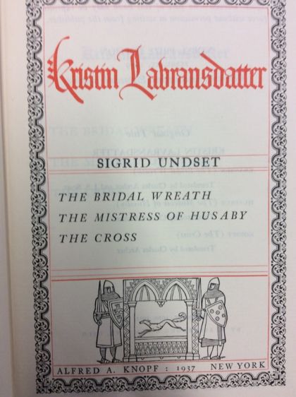 KRISTIN LABRANSDATTER. One Volume