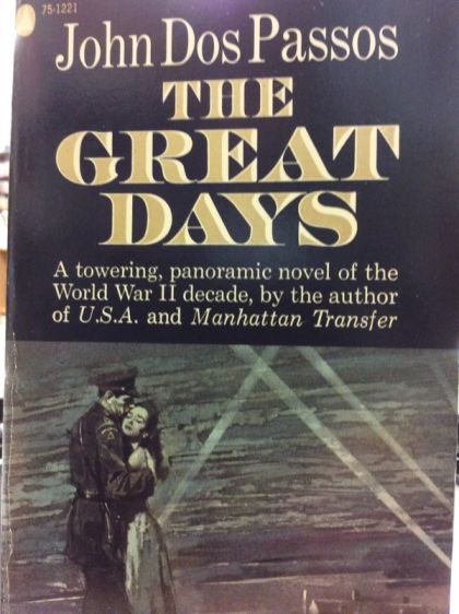 In this semi-autobiographical novel, an American named Roland Lancaster has a doomed affair with a younger woman, Elsa, in Cuba during World War II. The love story, in its happiest moments, parallels the idyllic life that author John Dos Passos had with his first wife, Katy. The Great Days plots a key concern of the author's in the 1950s--America's rise to global prominence during World War II, and its loss of power in the years following the peace. In preparing the novel, Dos Passos studied James V. Forrestal, Secretary of Defense from 1947 to 1949. In his notes on the novel, he quotes Forrestal: "to achieve accommodation between the power we now possess, our reluctance to use it positively, the realistic necessity for such use, and our national ideals."