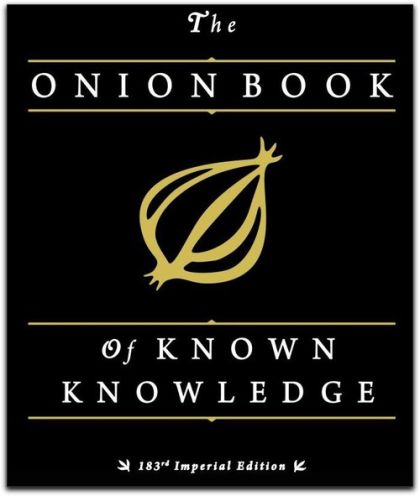 Are you a witless cretin with no reason to live? Would you like to know more about every piece of knowledge ever? Do you have cash? Then congratulations, because just in time for the death of the print industry as we know it comes the final book ever published, and the only one you will ever need: The Onion's compendium of all things known.Replete with an astonishing assemblage of facts, illustrations, maps, charts, threats, blood, and additional fees to edify even the most simple-minded book-buyer, THE ONION BOOK OF KNOWN KNOWLEDGE is packed with valuable information-such as the life stages of an Aunt; places to kill one's self in Utica, New York; and the dimensions of a female bucket, or "pail." With hundreds of entries for all 27 letters of the alphabet, THE ONION BOOK OF KNOWN KNOWLEDGE must be purchased immediately to avoid the sting of eternal ignorance.