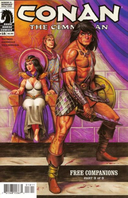 CONAN THE CIMMERIAN #18: FREE COMPANIONS PART 3 (of 3) Timothy Truman (W/P), Tom?s Giorello (P), Jos? Villarrubia (C), and Joseph Michael Linsner (Cover) On sale Jan 20 FC, 40 pages $2.99 Ongoing Defying Yasmela's orders, Conan sets himself on a runaway course that will end his time fighting with the combined forces of Amalric's mercenaries, the Khorajan army, and Julion of Koth's rebel soldiers. Our newest issue marks a turning point in Conan's career as a sword for hire, when he and his comrades find themselves without work or direction. An old battle wound threatens the life of Amalric, the leader of the restless mercenaries, and the rekindled affair between Princess Yasmela and Prince Julion continues to enrage Conan-who must take action in order to save face. This original tale explores events alluded to in Robert E. Howard's Conan tales, taking place right after Dark Horse's Black Colossus story arc and building to the birth of Conan's 'Free Companions'! 'Best New Series of 2008' -Wizard magazine '?writer Tim Truman is a perfect choice to adapt the oeuvre of Robert E. Howards into comics form.' -Comics Buyer's Guide Conan the Cimmerian ? 2009 Conan Properties International LLC ('CPI'). CONAN, CONAN THE BARBARIAN, THE SAVAGE SWORD OF CONAN, HYBORIA, and related logos, characters, names, and distinctive likenesses thereof are trademarks or registered trademarks of CPI. All rights reserved.