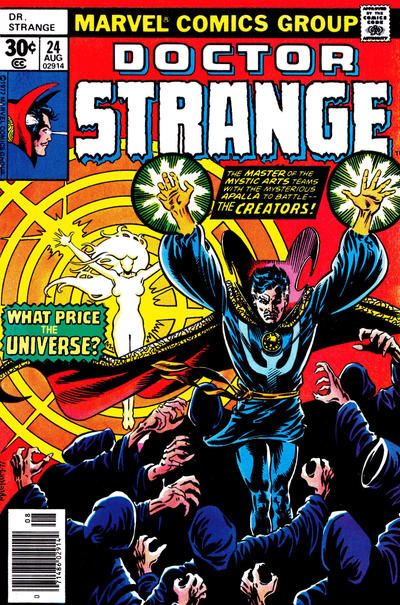 The Creators worry about Doctor Strange; he is the only mystic of his sphere whose perceptions might allow him to threaten their plans and their Cosmic Wheel of Change. He seeks to reach them but is balked! In Greenwich Village, a mysteious woman, Apalla the Sun Queen, gains entry to Strange's mansion, so she can question Clea as to his whereabouts. In the Quadriverse the Creators lament that Strange is their enemy, when he could have been a valuable addition to their ranks - but they mean to birth a new universe, in which they will control everything, promoting themselves to stars! They send a monster, Visimajoris, to kill Strange but Apalla has found him and slays the demon! She is an existing star who does not wish to be supplanted! The battle seems too easy, and Strange is able to reach their Wheel and destroy it! But that was a mistake! Apalla explains she meant to reverse the wheel and restore the status quo - this is now impossible! Has Doctor Strange handed the Creators their victory?