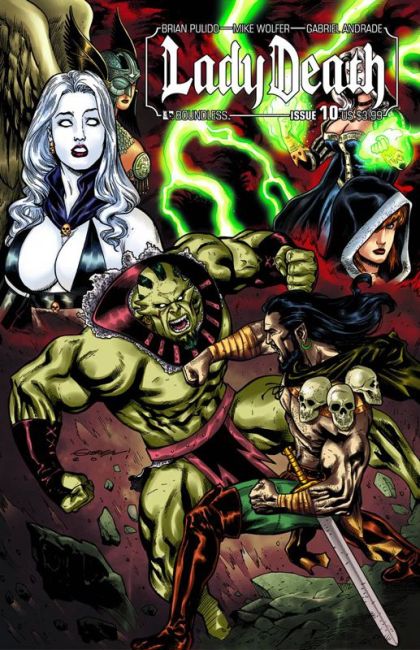 With Satasha's kingdom in ruins after an earth-shaking battle with Death Queen's army, Lady Death and the forces of the rebellion regroup to determine their next retaliatory strike against the horrific monarch who rules the Under Realm. Without a battlefield weapon mighty enough to channel her supernatural powers, the quest for a legendary sword leads Lady Death and Wargoth to a desolate city, laid to waste by an ancient curse. But before she can claim her prize, the albino goddess must face the slashing swords of those who protect the sword of The Silent One... Magdalyn and Dinah, the blood-thirsty, holy warriors of The Fallen! Death Queen has plans of her own, however, and an unholy alliance begins to take root, one which will soon spell death for a major member of the cast! Co-written by Mike (Gravel, Wolfskin) Wolfer and original creator Brian Pulido, this arc features the art of amazing new talent Gabriel Andrade who also provides the Regular and Wraparound covers for this issue! Also available with a special Art Deco Retailer Order Incentive by painter Michael Dipascale!