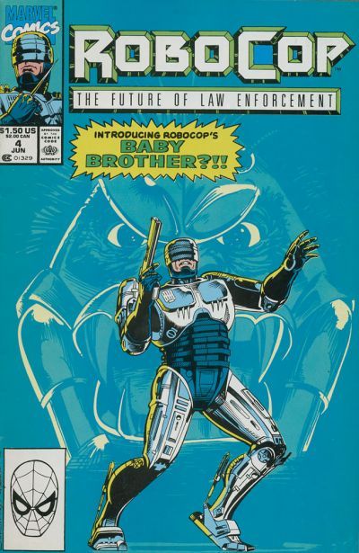 Cover by Lee Sullivan and Kim DeMulder. Dead Man's Dreams, script by Alan Grant, art by Lee Sullivan and Kim DeMulder; RoboCop infiltrates Cybexs base of operation but is ambushed by his own cyborg creations in the form of a mechanized gorilla and a smaller monkey; Cybex studies the captured RoboCop, learning what he can to build his own loyal army of cyborgs; With Nixcos president being one of the men whose dreams were stolen from the Dreamerama, Nixco sends an assassin (the kidnapped criminal witness from issue two, now under mind control) to take out Cybex. 36 pgs., full color. $1.50. Cover price $1.50.