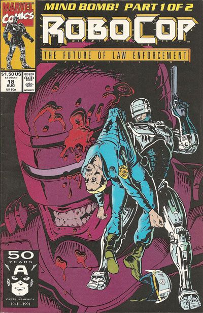 Mind Bomb, Part 1 of 2. RoboCop is attacked in the precinct by his fellow officers, including his own partner, Lewis. Written by Simon Furman, with pencils by Lee Sullivan. Cover price $1.50.