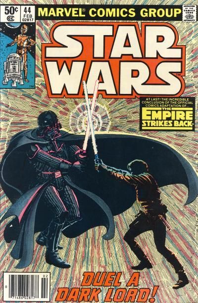 The Empire Strikes Back: Part 6 of 6. "Duel a Dark Lord!" Script by Archie Goodwin, art by Al Williamson and Carlos Garzon. Note: Part 6 of movie adaptation; based on the movie script; Williamson and Garzon both pencil and ink the art for this series. Plus: pin-ups by Walt Simonson, Joe Jusko, Fred Hembeck, Bob Layton and Marshall Rogers. Also: letters page commentary and farewell by Goodwin. Cover by Williamson and Garzon. Cover price $0.50.