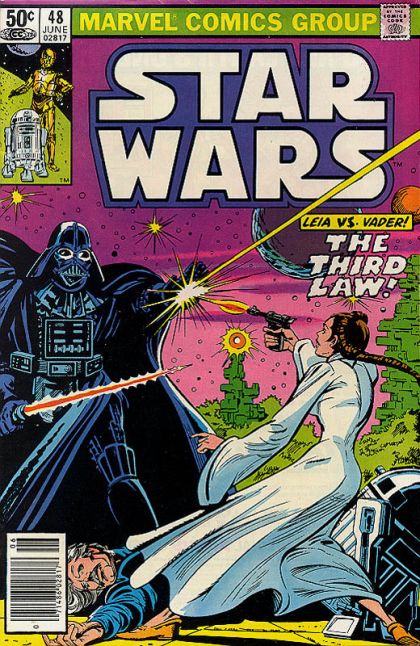 It's Leia vs. Darth Vader in "The Third Law." Written by Larry Hama, with art by Carmine Infantino and Carlos Garzon. Cover by Carmine Infantino and Bob Wiacek. Cover price $0.50.