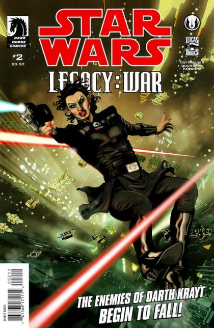John Ostrander (W), Jan Duursema (P/Cover), Dan Parsons (I), and Brad Anderson (C) It's all-out war as the Sith Empire unleashes its forces-and its secret weapons-on the rest of the galaxy. As Emperor-in-Exile Roan Fel loses ground against the Sith, he plots to use the enemy's own devices against them-regardless of the cost in innocent lives. Meanwhile, Cade Skywalker has a plan to draw out Darth Krayt for a showdown, a Sith spy within Fel's ranks is revealed, and Fel's own spy meets her fate!