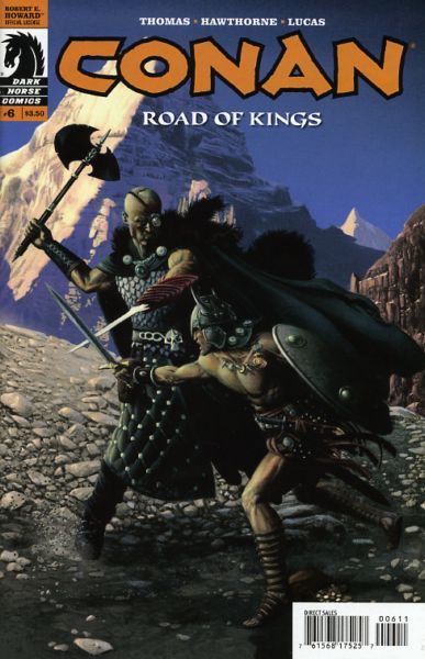 The dangers keep stacking up against Conan as he travels down the Road of Kings. If he wants to continue on his journey, Conan will need to defeat a deadly executioner, a mystic royal astrologer, and the evil and deadly razor-handed Gamesh! Chapter 6 of Conan's voyage along the Road of Kings is one you won't want to miss! Written by legendary Conan scribe Roy Thomas and illustrated by artists extraordinaire Mike Hawthorne and John Lucas!