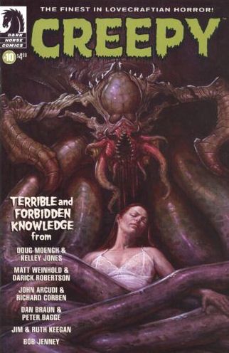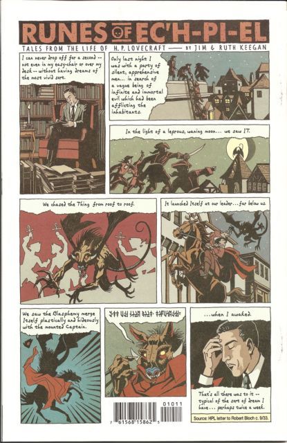 In honor of the greatest horror writer of them all, Uncle Creepy presents an all-Lovecraft special. We're not worthy! We're not worthy! Leading off with the twist-filled conclusion to Doug Moench and Kelley Jones's mind-blowing 'The Lurking Fate That Came to Lovecraft,' this issue also includes takes on the master from the teams of John Arcudi/Richard Corben and Matt Weinhold/Darick Robertson, a classic reprint of 'The Rats in the Walls,' and a variety of other Lovecraft-inspired features! For once even Uncle Creepy is scared!