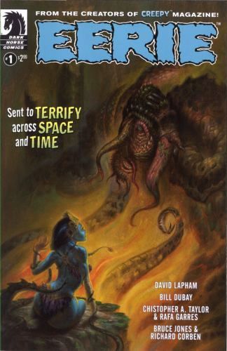 Uncle Creepy's been having all the fun in Dark Horse's revival of classic Warren magazines, so now it's Cousin Eerie's turn! The terrifying treasury of sinister sci-fi and fearsome fantasy returns with two all-new stories to thrill and chill, plus a classic reprint! First up is a dose of robotic paranoia from red-hot writer/artist David Lapham, followed by way-too-close encounters from Creepy veteran Christopher Taylor! Your trip to the comics store is about to get a lot more horrifying!