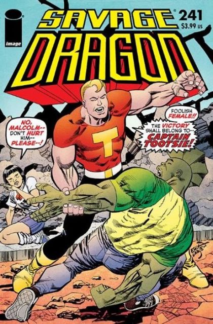 "THE CAPTAIN'S NAME IS... TOOTSIE!" From the Golden Age of comics comes the preeminent product pitchman: Captain Tootsie! The good Captain has taken on a new role-that of a government operative sent to Toronto to capture and retrieve Malcolm Dragon... but the son of Savage Dragon has other plans.