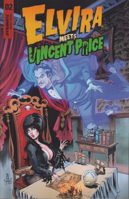 The two titans of horror and comedy unite in comics for the very first time! Dynamite Entertainment Proudly Presents... Elvira Meets Vincent Price! Elvira and the Ghost of Vincent Price continue their quest to find a lost cult movie... AND save the world from the wrath of an awakened Egyptian god. Their journey takes them to the crumbling country estate of a reclusive film director and his movie-star bride, but things go all Dr. Phibes before you can say House of Usher! Come for the sexy horror, stay for the terrible puns and movie trivia! From writer David Avallone (Bettie Page, Twilight Zone: The Shadow) and artist Juan Samu! Issue #2 features a continuing all-star cast of cover artists, including fan favorites Dave Acosta, Anthony Marques w/J. Bone, series artist Juan Samu and a stunning photo of the gorgeous lady herself - Elvira: Mistress of the Dark!