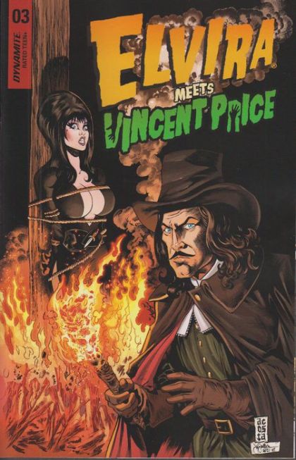 The two titans of horror and comedy unite in comics for the very first time! Dynamite Entertainment Proudly Presents... Elvira Meets Vincent Price! Elvira and Vincent's Ghost arrive in Cairo, hot on the trail of the missing movie that can save the world from Amun-Ra! It's a game of cat-and-mouse among the pyramids, as a pair of silent comedy assassins stalk Elvira and Vincent, ancient crypts are infiltrated, angry goddesses are awakened, and tourists are confused... in a story we call "Raiders of the Lost Schlock!" Adventure, horror, and temples of doom but no crystal skulls, we promise... in this latest issue from writer David Avallone (Bettie Page, Legenderry: Vampirella) and artist Juan Samu (Black Panther, Transformers)! Issue #3 features a continuing all-star cast of cover artists, including fan favorites Dave Acosta, John Royle, series artist Juan Samu and a stunning photo of the gorgeous lady herself - Elvira: Mistress of the Dark!