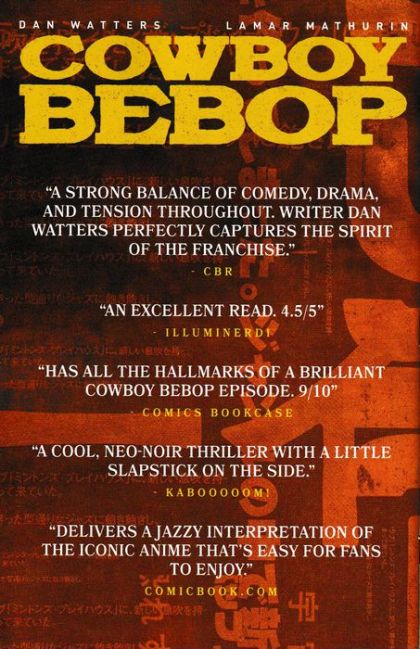 BASED ON THE NEW NETFLIX LIVE-ACTION ADAPTATION OF THE ORIGINAL ANIME! An original story set in the year 2171. The bounty hunter crew of the spaceship Bebop chase an ex-gang member who holds a vest which gives the wearer unlimited luck. New Netflix series starring John Cho (STAR TREK), Mustafa Shakir (LUKE CAGE) and Daniela Pinada (JURASSIC WORLD: FALLEN KINGDOM).
